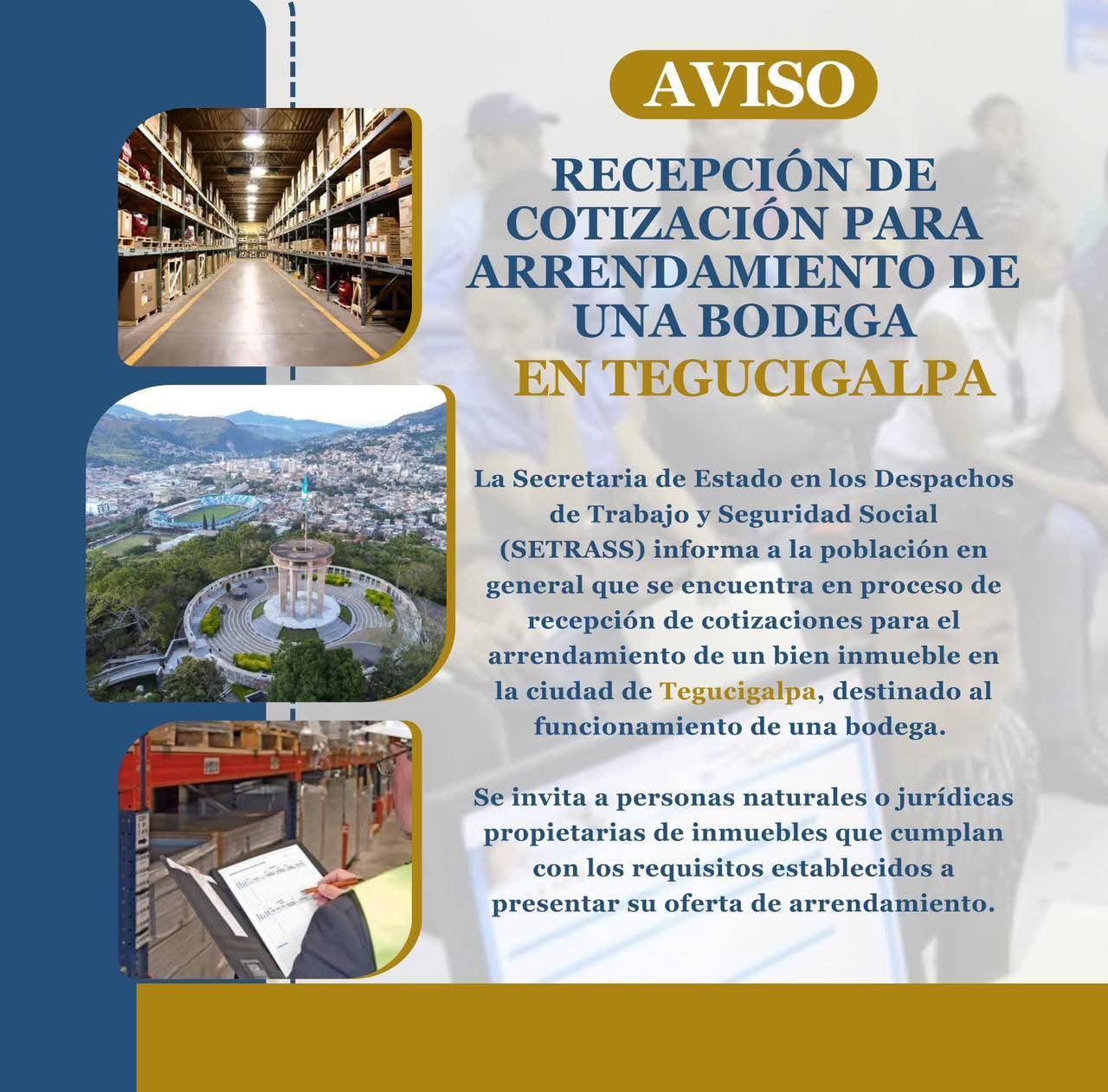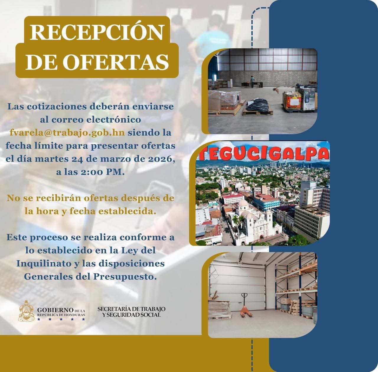 ATENCIÓN TEGUCIGALPA Recepción de cotización para arrendamiento de bodega.