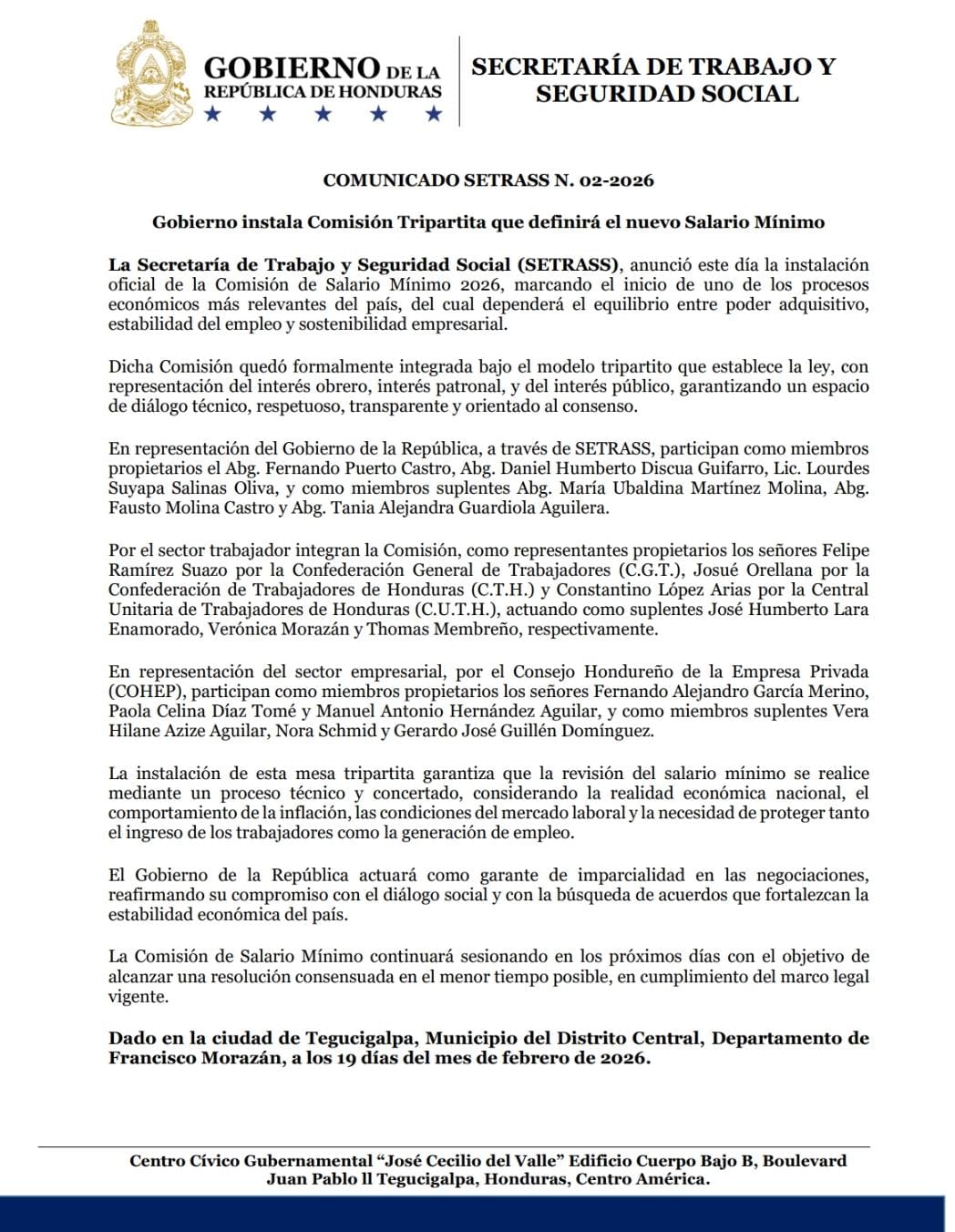 La Secretaría de Trabajo y Seguridad Social informa que el IHSS inicia una nueva etapa institucional, retomando su funcionamiento bajo el marco legal y normativo.